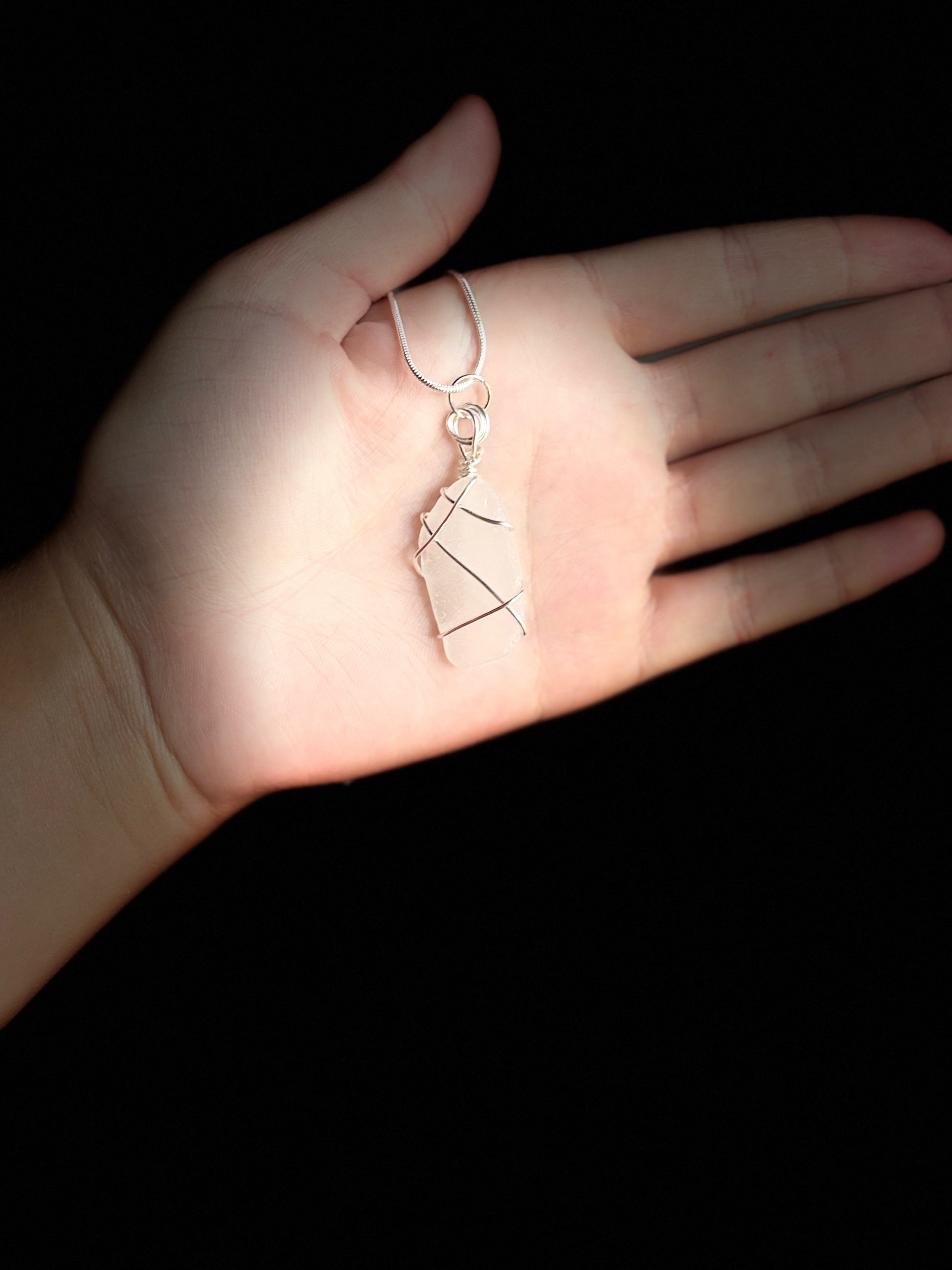 Beach Glass Necklace -White-Large